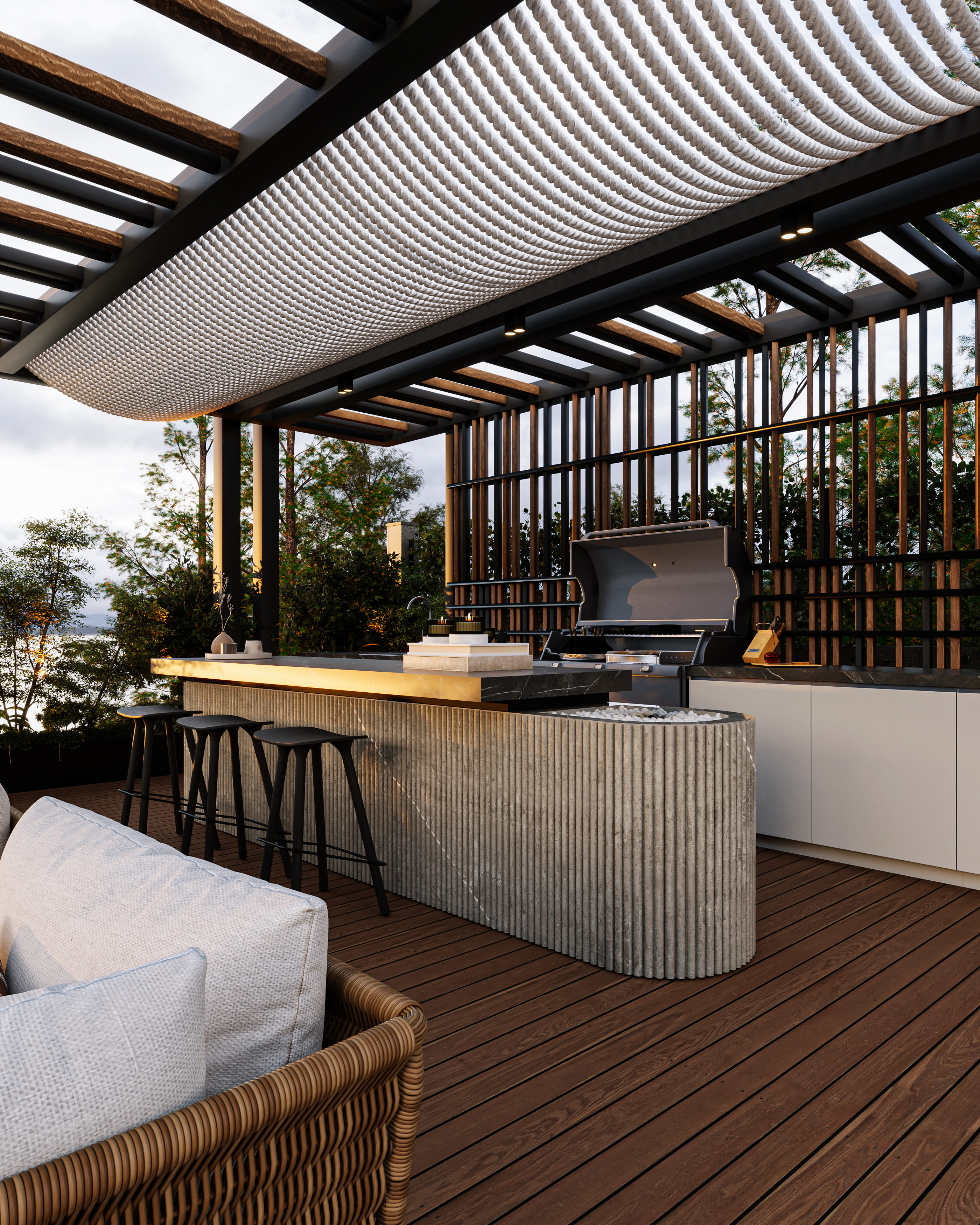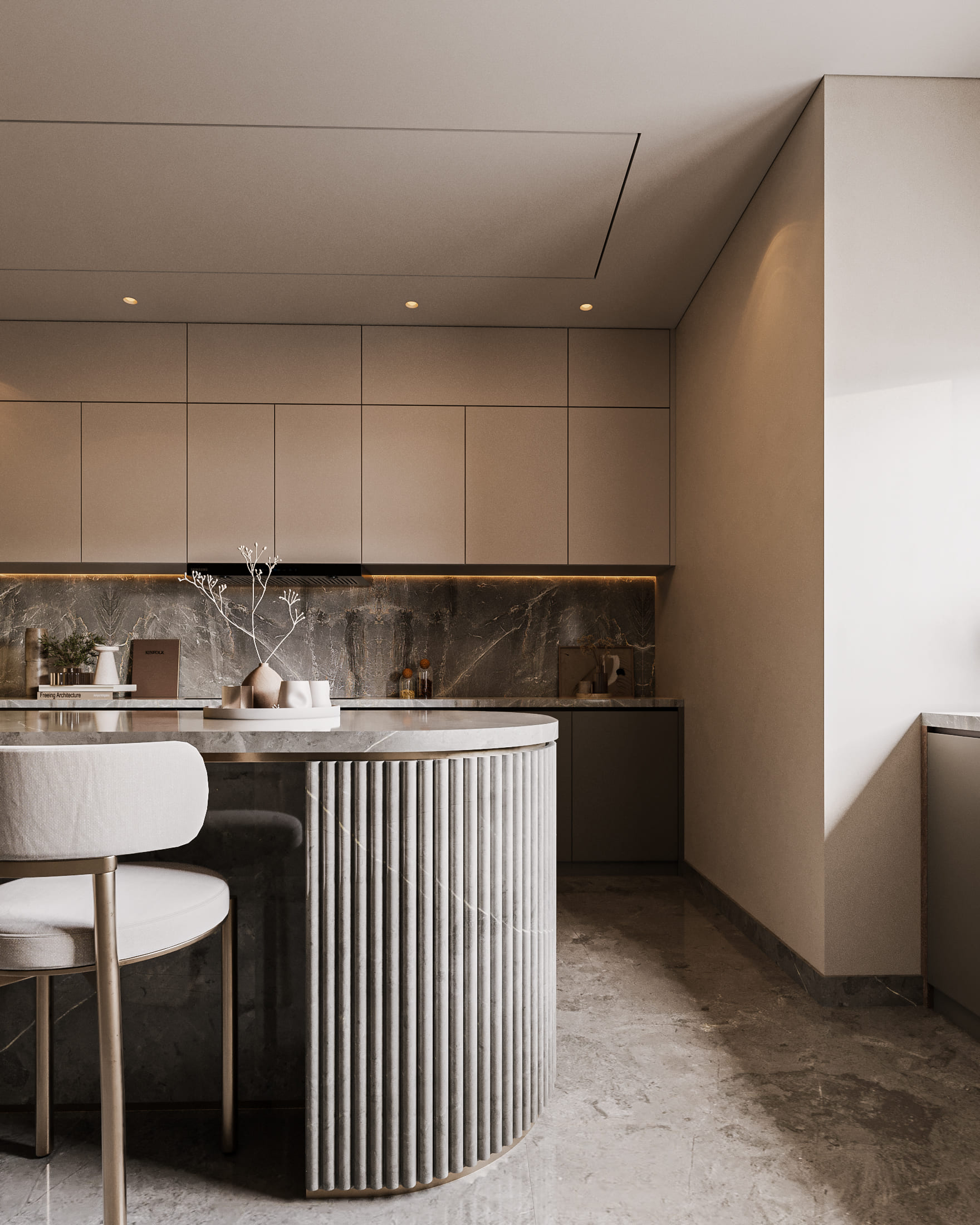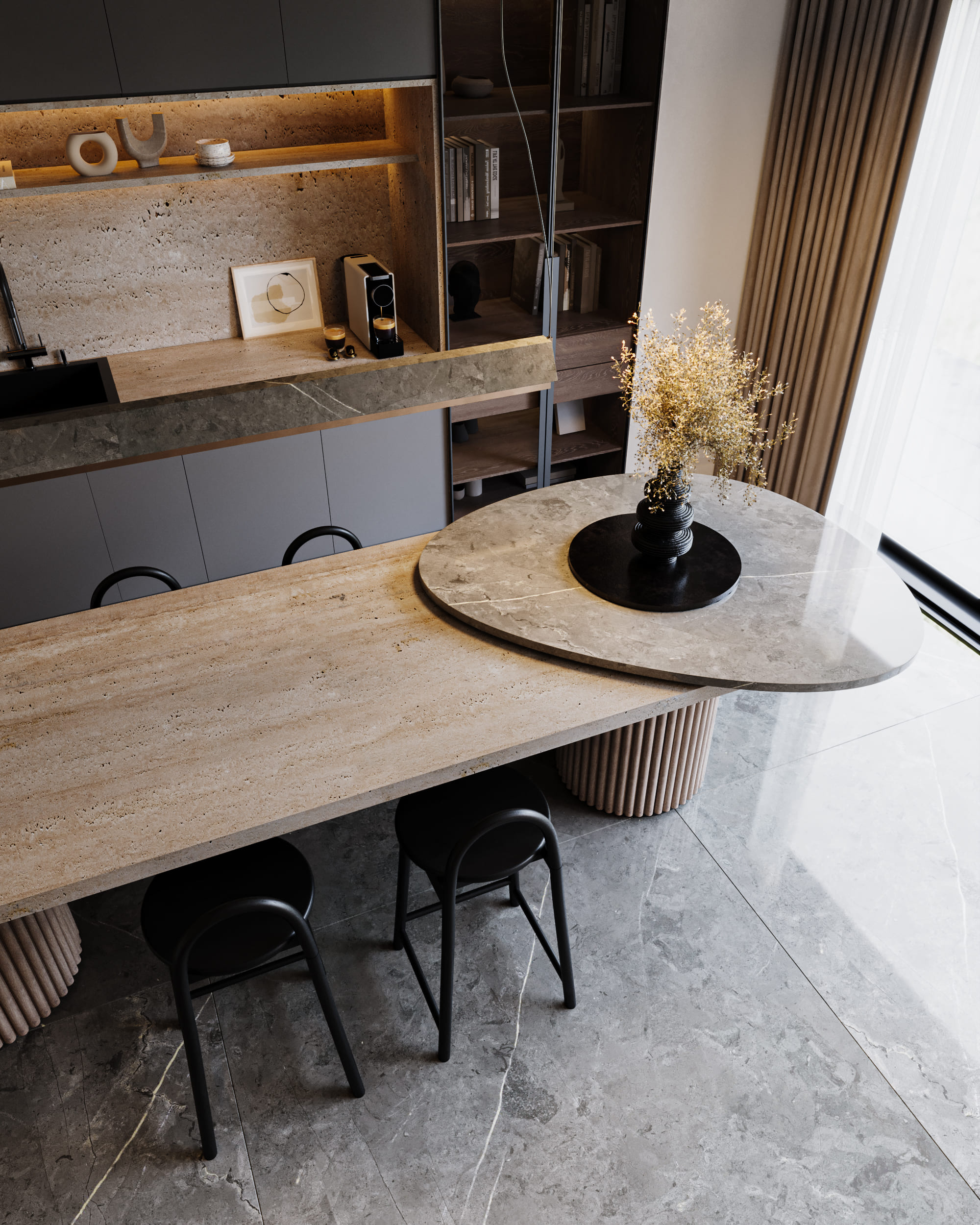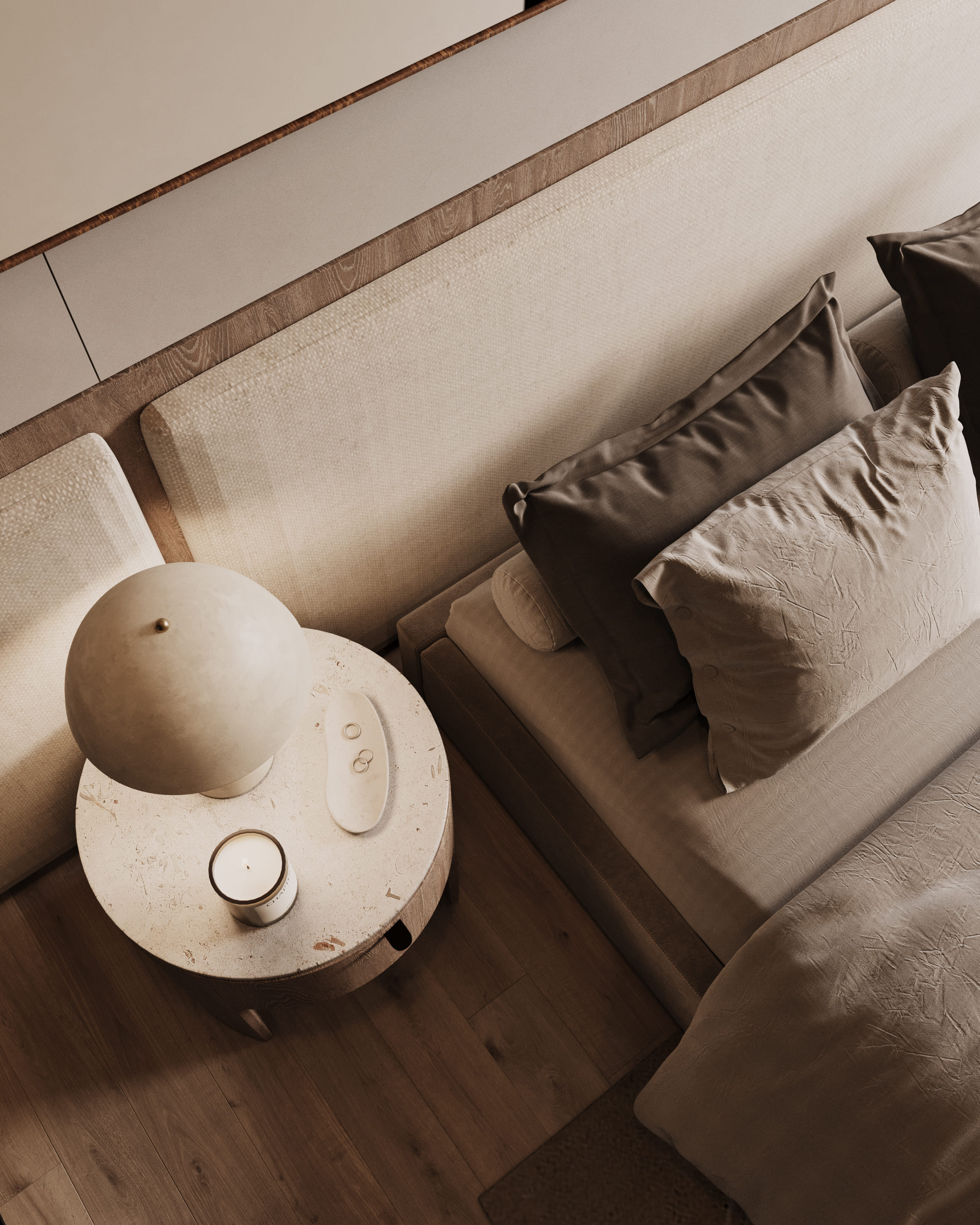 The New Giza Villa embraces a minimal contemporary language while integrating organic materials. Generous glazing opens to a private courtyard. Interiors feature warm wood tones, polished concrete floors, and custom millwork. Landscaped courtyards with native planting create an oasis in the desert. Indoor–outdoor living is maximized with expansive sliding doors and sun shading devices. Thoughtful detail in reception, living areas, kitchen, and bedrooms reinforces a sense of calm sophistication.